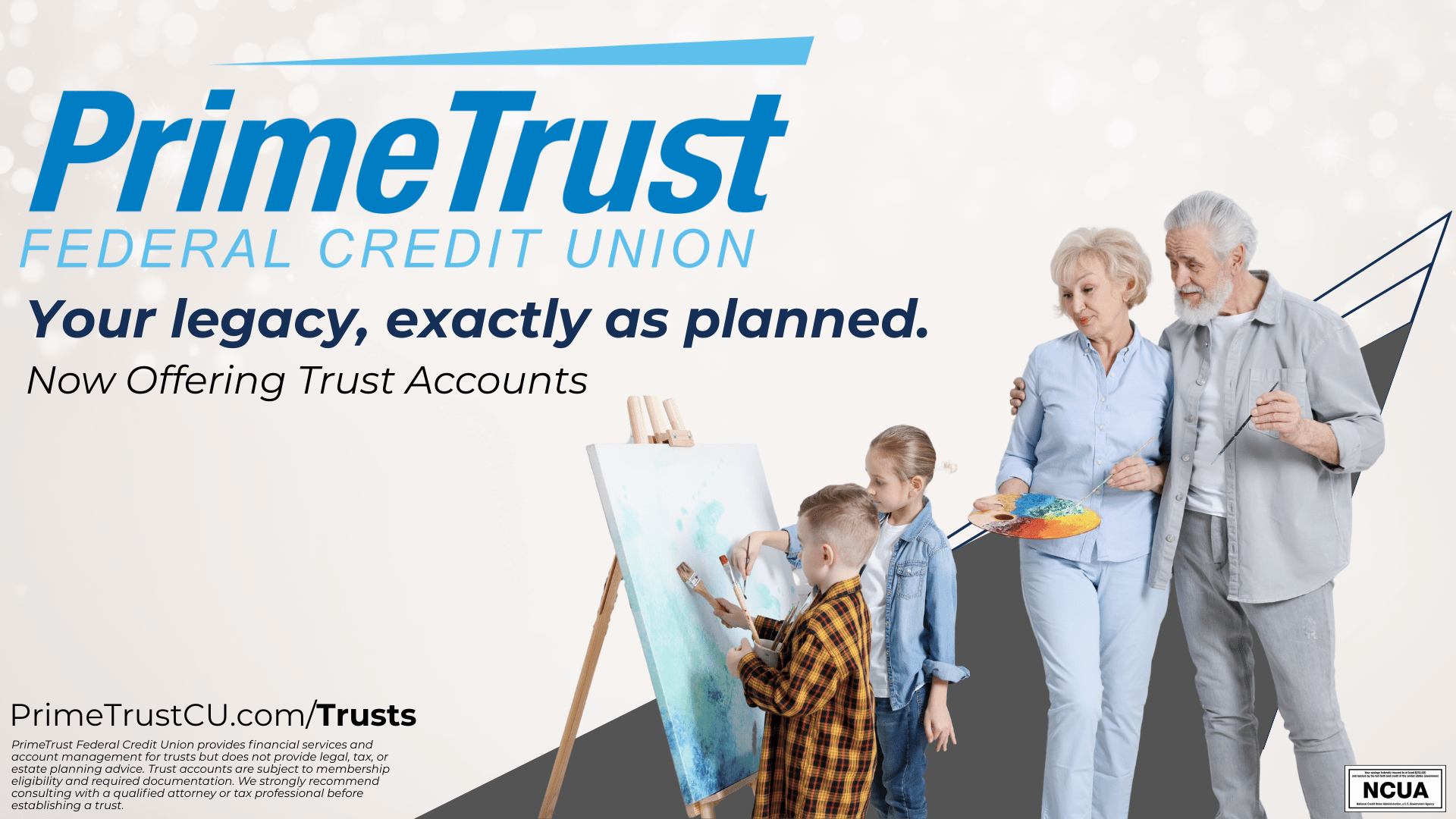 While we recommend working with a professional attorney or estate planner to draft your trust agreement, PrimeTrust is here to handle the financial side of your legacy. Once your trust is established, we make it easy to open new accounts and establish certificates, money market, savings, or checking accounts specifically for your trust.