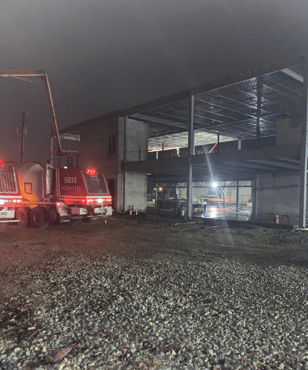 Day and night - progress is being made! Concrete has now been poured on the second floor.